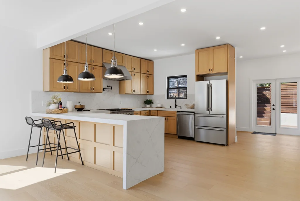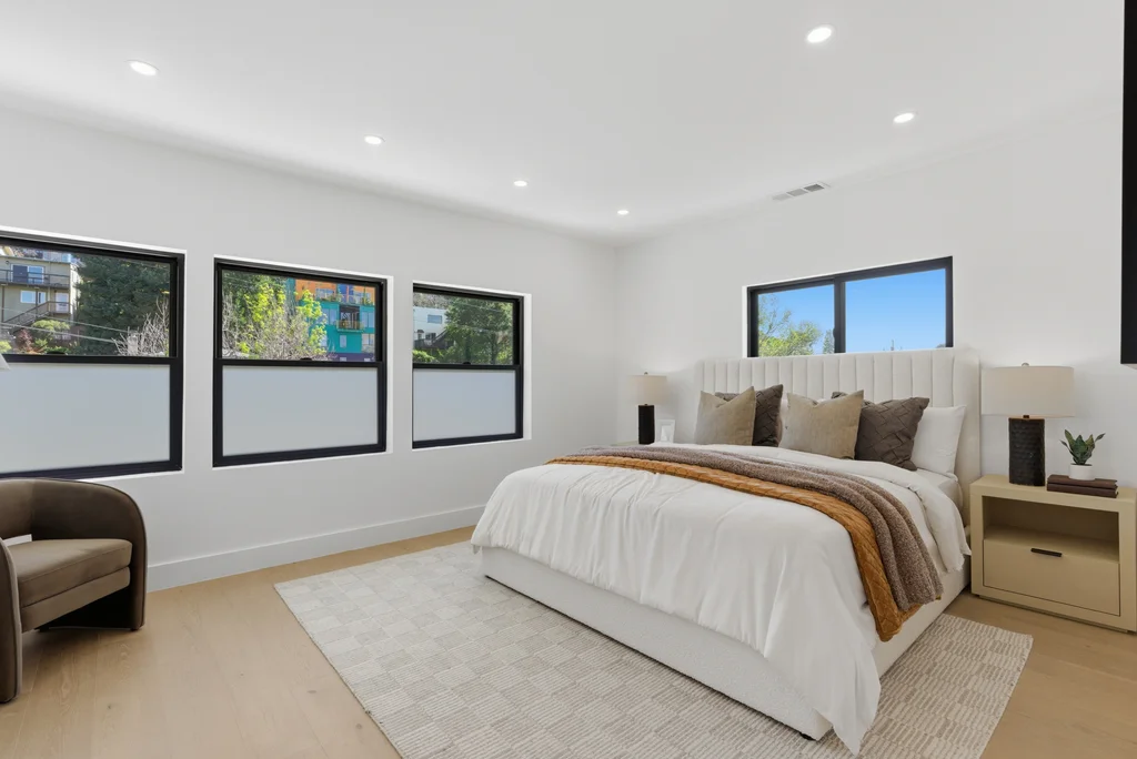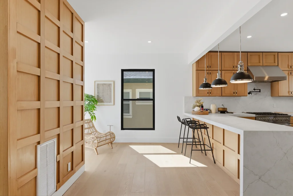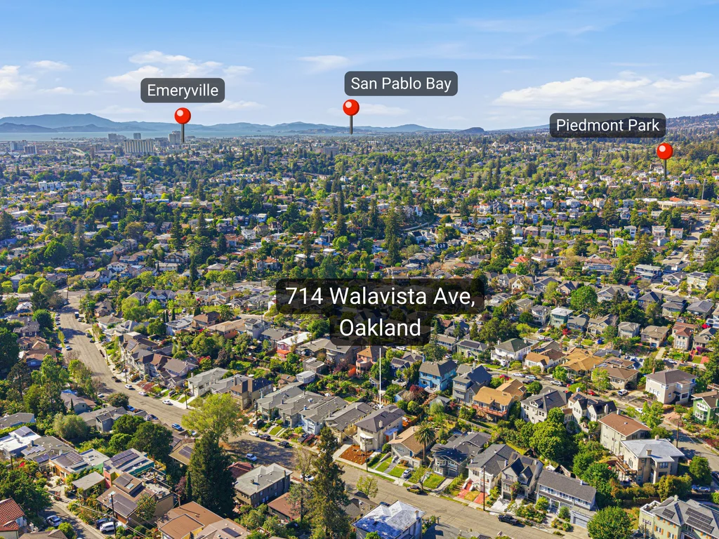 Welcome to 714 Walavista Ave, a completely transformed modern home in the highly sought-after Crocker Highlands neighborhood of Oakland. This 4-bedroom, 4.5-bath residence offers approximately 2,778 sq ft of living space, featuring an open floor plan and elevated finishes throughout. Warm wood panel accent walls and hardwood flooring throughout create a sophisticated, inviting atmosphere. Remodeled with city permits, including structural improvements, this home reflects quality craftsmanship and thoughtful design. The spacious living area flows into a chef’s kitchen with a large waterfall island, custom cabinetry, and premium finishes ideal for everyday living and entertaining. All bedrooms are en-suite. The primary suite features a spa-inspired bathroom with soaking tub and walk-in shower. Mahogany decks extend the living space outdoors. Conveniently located near Lake Merritt, shopping, dining, and commuter access. Homes like this rarely come available—don’t miss it.